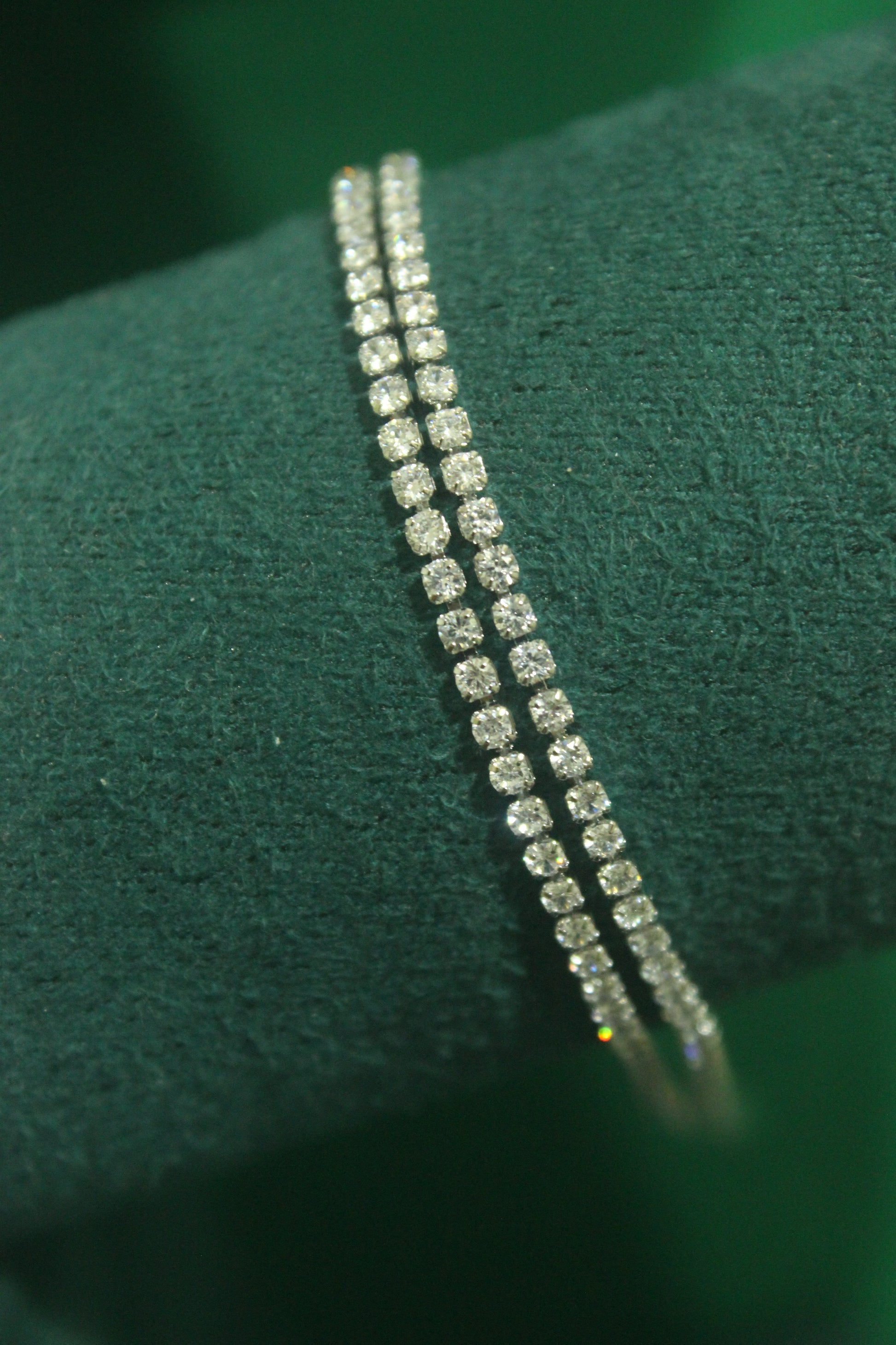 Elevate your elegance with the Luna Duo Tennis Wristlet, featuring two parallel lines of meticulously set round diamonds. This expert-crafted bracelet offers a refined sparkle that enhances any ensemble, combining timeless design with exceptional brilliance for a sophisticated statement on your wrist.